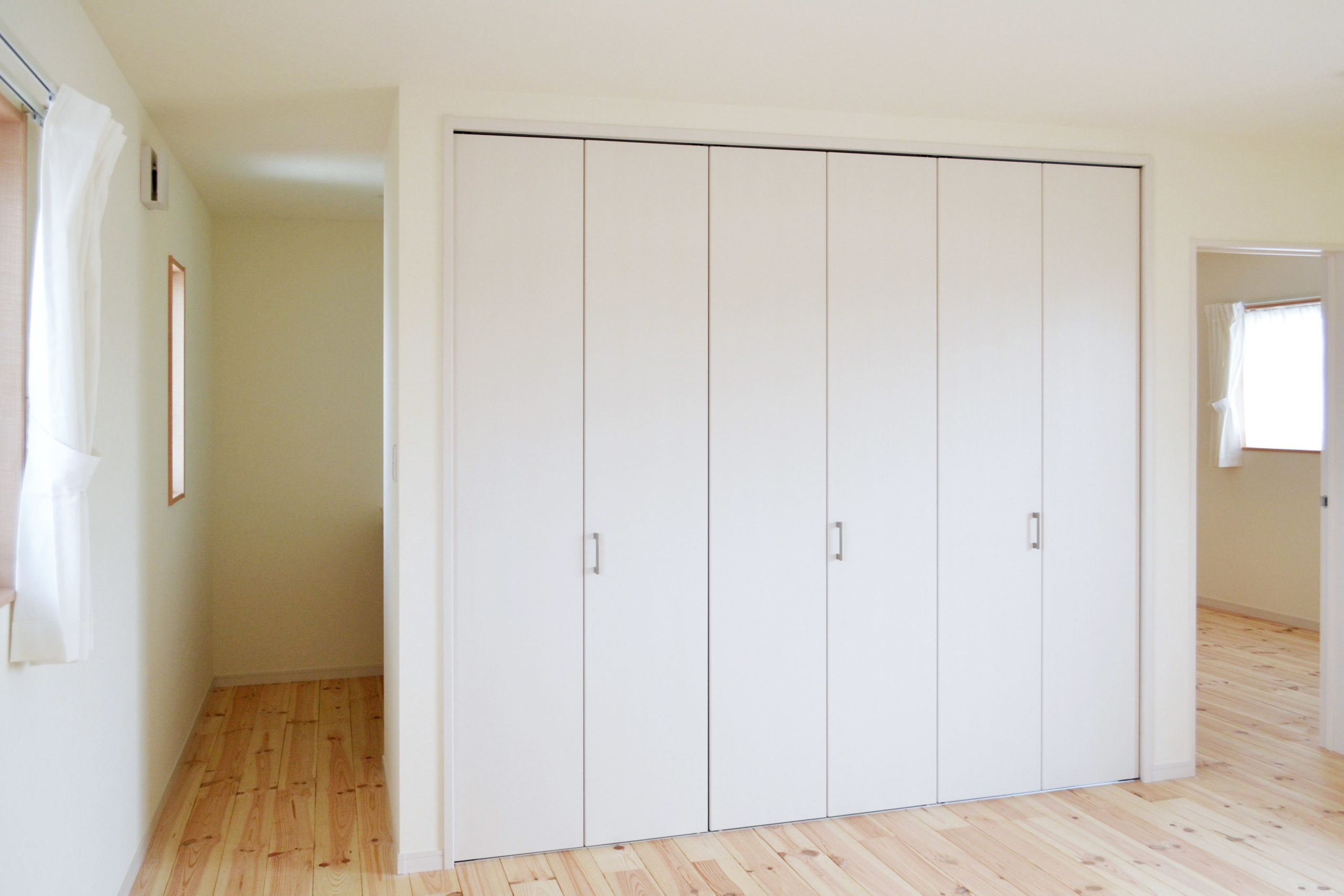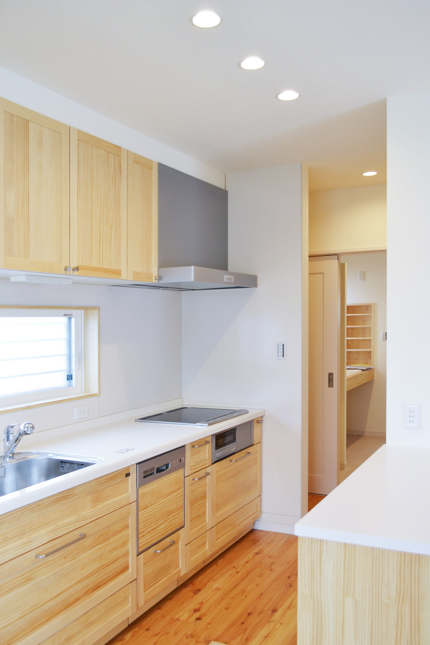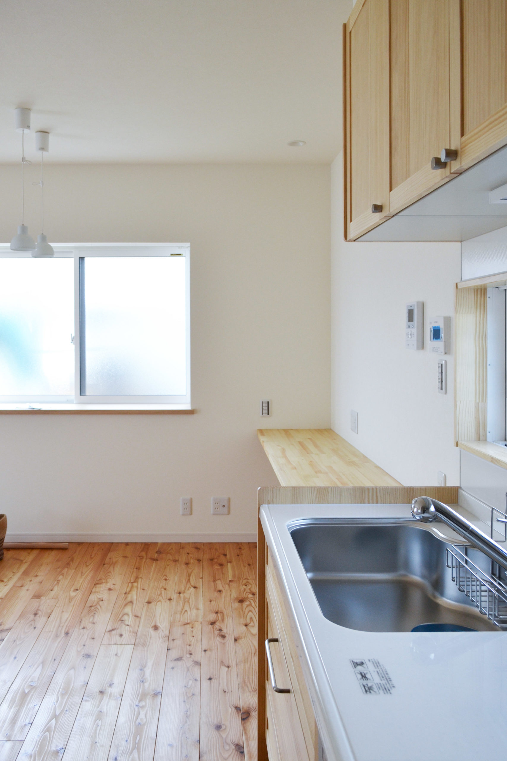 インテリアはあくまでシンプルにナチュラルに。白と木のベージュで統一され上質なぬくもりを感じるお住まいになりました。無垢のボルドーパイン材の床は、夏はサラッと冬は暖かく素足になじみます。