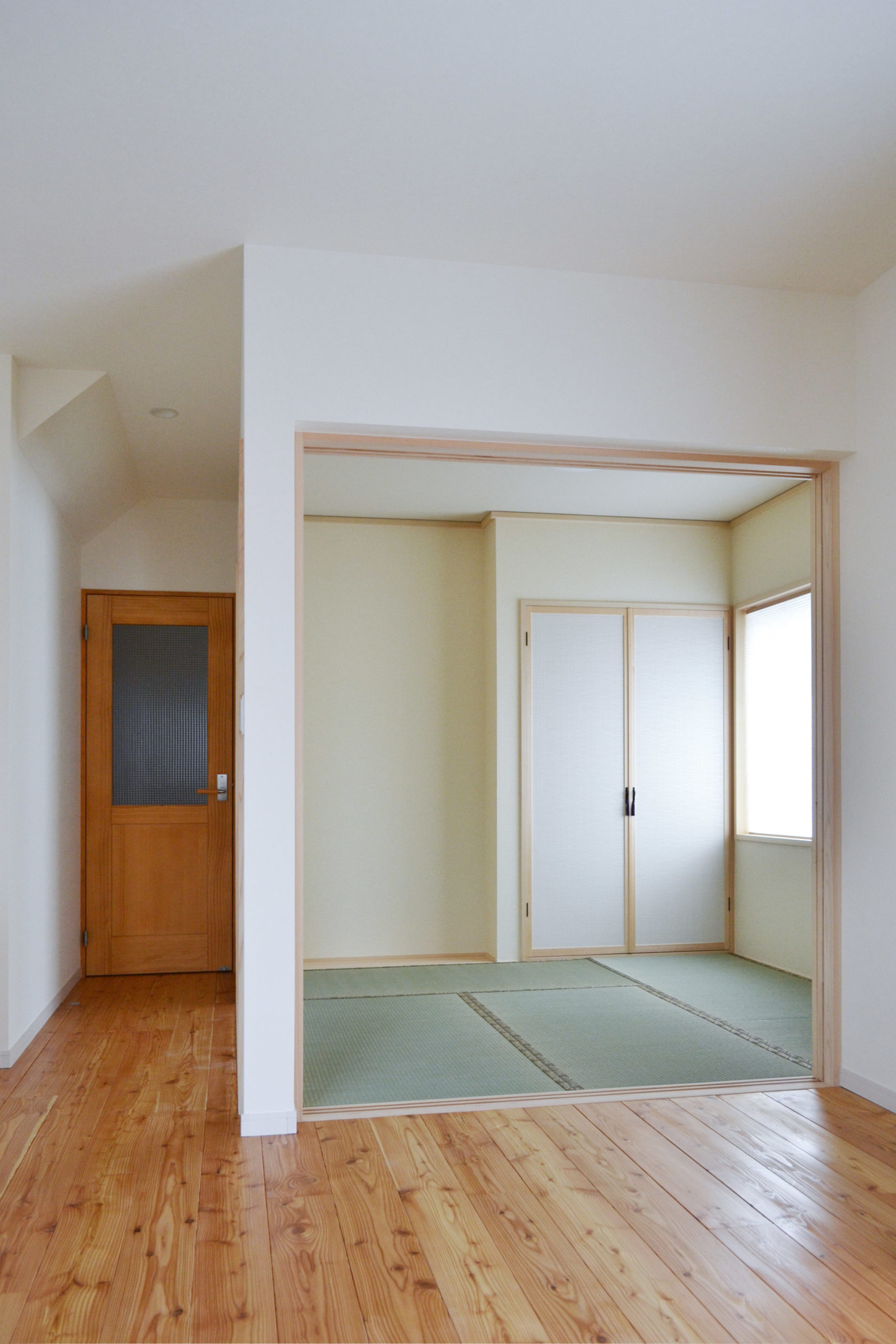 LDKの和室コーナーは、普段は開放して子どもの遊び場やお昼寝スペースに。襖を閉めれば独立したスペースになるので様々に活用できます。