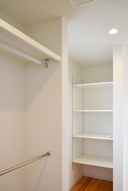 2階は広い寝室と大きな収納のあるオープンフロアで構成されています。子どもたちの成長に対応し、自由なアイデアで使えるシンプルな間取りです。